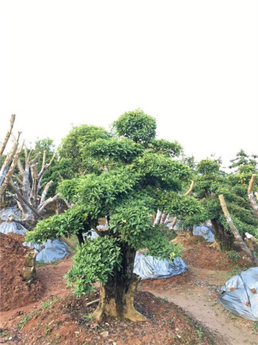 造型杜英:選用生長于山谷里的原生杜英和古樹樁進行移植栽培,運用蟠扎,牽拉,修, 剪 等手法制作出形態各異的造型杜英和杜英盆景。