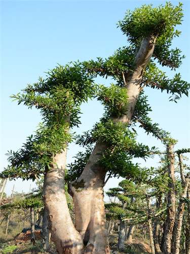 杜英造型產(chǎn)品主要類型有:古樁造型、雙桿造型、單桿造型、盆景造型、柱形、球形等。