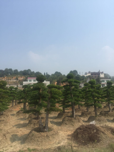造型榆樹:選用深山老林采挖的形態各異的老榆樹移植至素沙土地,經過數年的精心培育,枝葉茂盛之后方可造型。